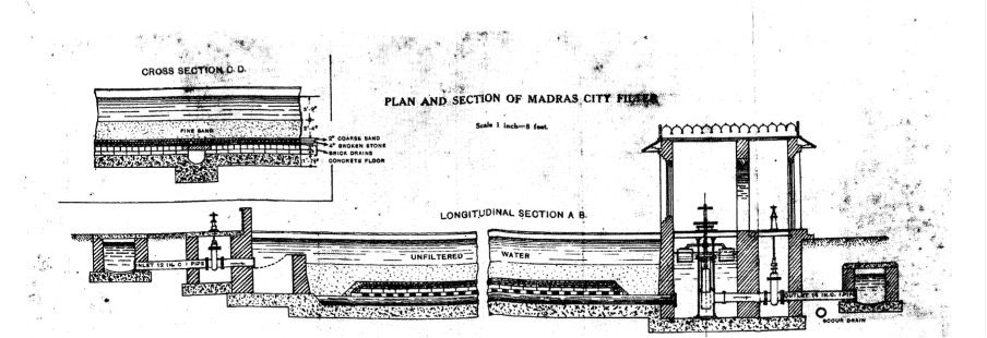 Cuando por fin en 1914 se construyó en Madrás una planta de filtración, el contexto internacional se encontraba dividido por la competencia entre los métodos predominantes en Estados Unidos (filtración mecánica) y Gran Bretaña (filtración lenta de arena). Los expertos británicos que participaron en la toma de decisiones en Madrás optaron por seguir el método preponderante en la metrópoli y descartaron los filtros mecánicos porque, en su opinión, no habían sido suficientemente probados. La ciudad construyó filtros de arena lentos que supusieron un coste elevado para los contribuyentes de la ciudad, la mayoría de los cuales eran de origen indio.