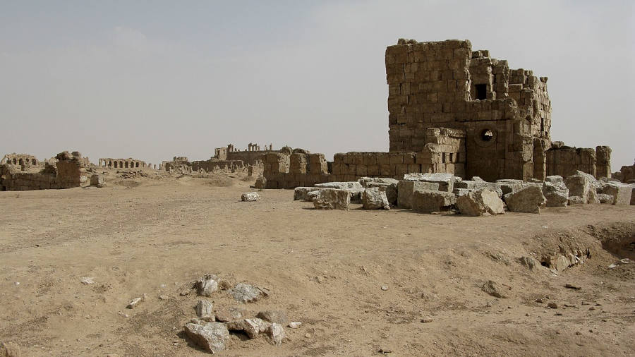 Vista de l’antiga ciutat de Rusafa, en una zona poc fèrtil on els jardins del califa Hixām havien de disposar d’algun sistema de rec. Wikimedia.