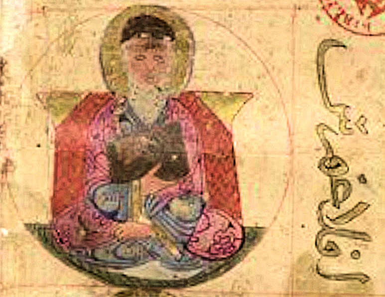 Representació de Galè que apareix en un manuscrit àrab sirià del segle XIII del Tractat de la triaga. Wikimedia.