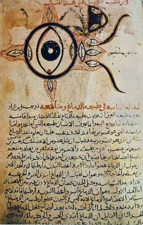 L’obra personal de Ḥunayn ibn Isḥāq destaca per les seves aportacions a l’oftalmologia. Imatge de l’anatomia de l’ull que es troba a un ms. del s. XII dels Deu tractats sobre l’ull. Wikimedia.